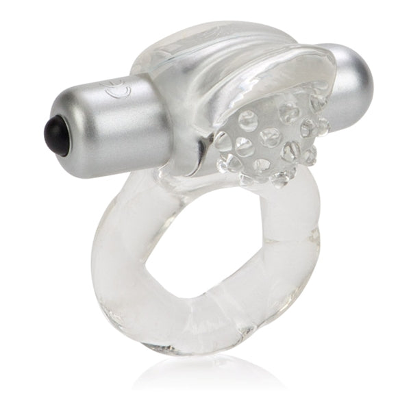 Lover's Delight Nubby from California Exotic Novelties. Sized for comfort and intensity. Stretchy and comfortable couples enhancer provides sturdy support for him and tantalizing nubbies for her. Prolong your erotic pleasure with the Lover's Delight Nubby. The super soft and stretchy couple’s enhancer offers premium stamina support and delivers mutual stimulation satisfaction. The sensuously contoured support ring features an exotic pleasure nubbed clitoral teaser and a wireless 3 speed vibrating, bullet shaped stimulator for a mind blowing orgasmic encounter. The discreet ring is compact and made from pliable, unscented, phthalate free Thermoplastic Elastomers TPE. The stretchy enhancer slides over the erect penis to provide comfortable support for extended amorous adventures. The curved, contoured clitoral teaser is studded with nubs that deliver tantalizing pleasure. Insert the removable bullet stimulator, and indulge in powerful resonating vibrations. The waterproof toy is suitable for adventurous exploration in or out of the water. The easy to use enhancer is ideal for the first time and experienced users, and makes a great addition to an intimate toy collection. The bullet vibe can also be used to arouse and stimulate sweet spots all over the body. Before and after use, clean the support ring with a toy cleaner spray or wash in mild soapy water. Safe and pure for body and pleasure. Made using phthalate free, non-toxic materials: unscented TPE Enhancer Ring, ABS Plastic Stimulator with Metallic Plating. Batteries 3 watch size required to power up, 6 included. Sex toy measurements: 3 inches long by 1.75 inches wide ring, 2.25 inches long by .75 inch wide stimulator. Bulk weight: 1.9 ounces. Lover's Delight Nubby is a registered trademark for California Exotic Novelties. Sex toys and sexual wellness. Categories: Bondage, Fetish, Kink, Sex Toys for Couples, Love Rings, Cock Rings, Vibrating Love Rings, Men's Cock and Ball Gear. 2023.