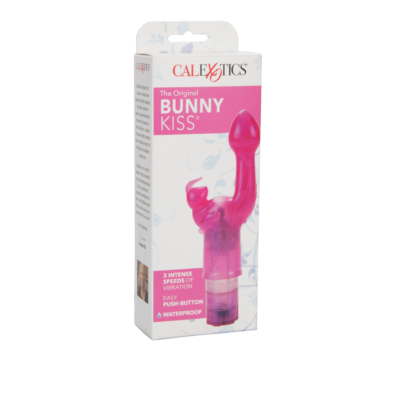 The Original Bunny Kiss Pink Vibrator. California Exotic Novelties #1 best seller! The Original Butterfly Kiss is the ultimate power packed intimate Massager with her orgasmic pleasure in mind. The multi-speed Arouser is super soft and delicately shaped to tantalize, tease and stimulate the Clitoris and G-Spot simultaneously. Use the erotic Stimulator to indulge your secret sensual pleasures. The bright stimulator is made from soft and pliable unscented Thermoplastic Rubber TPR and is designed to massage and caress your sweet spots. The curvy arouser has a smooth, angled bud shaped G-Spot tip and a Bunny stimulation curve. The Bunny’s intense fluttering Ear action massages and stimulates the Clitoris to climax perfection. To use the exotic teaser, insert 2 AAA batteries into the end cap, and push the button control to activate the 3 ascending vibration speeds. The Massager measures 2.75 inches by 1.25 inches and is discreetly sized to slip into your purse for intimate fun whenever you are in the mood. The ultra feminine, waterproof arouser is suitable for first time or experienced users, and is great for solo play fun in the shower, bath or hot tub. The ultimate in total feminine arousal. Sensually designed, power packed Arouser with a delicately shaped G-Spot Stimulator. Non-phallic Swan shaped Vibrator comes with 3 speeds of intense power. Optimum fluttering ears to tease and tantalize. Sized for beginners and advanced users. Easy push button operation. Safe and pure for body and pleasure. Made using phthalate free, non-toxic materials: Thermoplastic Rubber TPR Massager, Bunny, ABS Plastic Cap. Vibrating sex toy requires 2 AAA batteries, not included. Do not leave batteries in the vibrator between uses. Vibrator measures 2.75 inches long by 1.25 inches wide. Bulk weight 4.1 ounces. A water based lubricant is recommended. Always clean before and after use. Pat dry before storing. The Original Bunny Kiss Vibrator is a registered trademark for California Exotic Novelties. Sex toys and sexual wellness. Colors may vary. Categories: Vibrators, G-Spot Vibrators, Sex Toys for Women, G-Spot, Clit Cuddlers, Clitoris Stimulators. 2023.