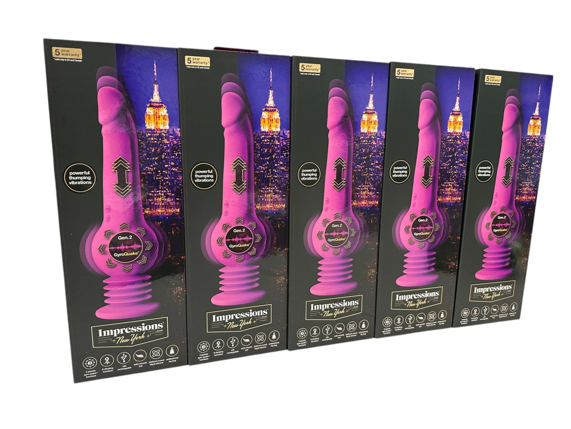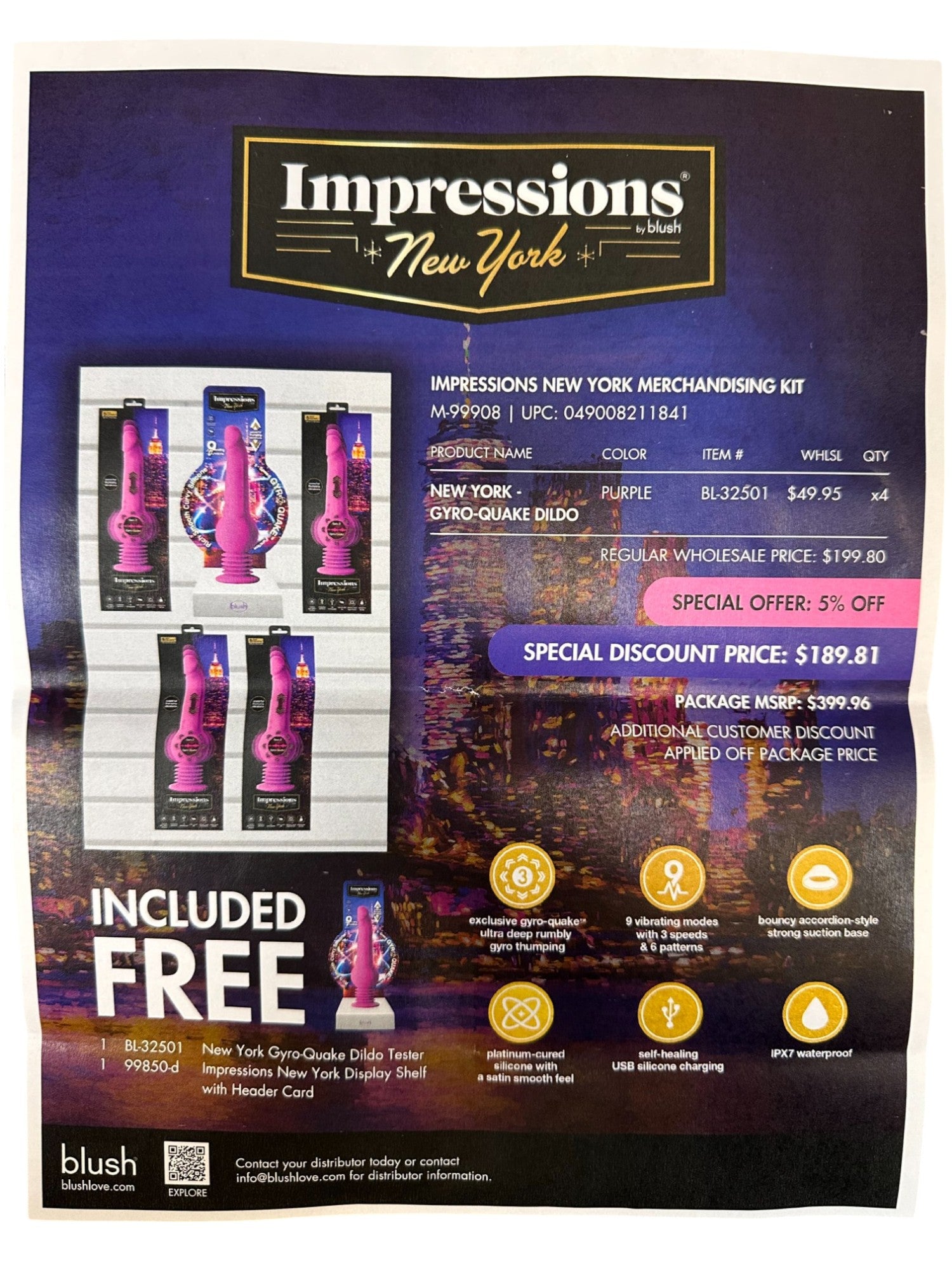 Includes 4 IMPRESSIONS NEW YORK GYRO-QUAKE DILDO PURPLE and One free tester