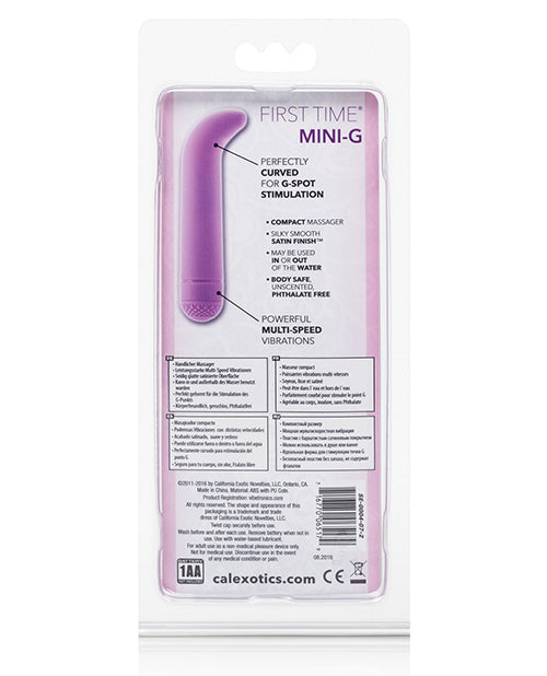 First Time Mini G Vibe Purple Pleasure Toys from California Exotic Novelties. Awarded Best in Business 2022 in the Health and Wellness Category by Inc. Magazine! Velvety soft pleasure products designed for first time or experienced users. Make it a memorable experience with the First Time Collection! Tantalize your curves with the exotic First Time Mini G. This versatile and curvaceous mini vibe has a velvety smooth finish, and delicate curved tip. The ultra feminine multi-speed stimulator can be used for intimate, sensual exploration, or for massaging the entire body. The compact and light weight pastel stimulator features a satin finish, solid shaft and an angled, curved tip that is designed to provide pleasurable G-Spot arousal and climax. To control and change the intensity of the multi-speed vibration function simply twist the end cap. Use the discreet waterproof vibe to stimulate and massage erogenous zones all over the body. To increase sensual sensations, you can also use the power packed vibe to add excitement to bath or shower time fun. The safe and strong teaser measures a compact 4.5 inches by 1 inch and is ideal for experienced pleasure seekers and intrigued first time explorers. Slip the pocket sized vibe into your purse for fantasy fun on the run! Always use quality lube, when playing and experimenting with the curvy massager to guarantee ultimate G-Spot stimulation. The hygienic, easy to clean stimulator can be washed in warm, soapy water or sprayed with a toy cleaner spray. Velvety soft, power packed, and easy to use. Multiple speed classic vibrator. Phthalate free, non-toxic materials ABS Plastic with Polyurethane PU Cote. Vibrating sex toy requires 1 AA battery, not included. Mini G Vibe measures 4.5 inches by 1 inch wide. Bulk weight: 2.2 ounces. Waterproof vibrations for play outside the bedroom. Cal Exotics: Home, Toys, Solo Play Toys, Vibrators, Vibrators First Time Mini-G - Purple. First Time Mini G Vibe Purple from California Exotic Novelties. Categories: Pleasure Toys, Bullets, Mini Vibes, Vibrators, G-Spot, G-Spot Firm Vibrators, Sex Toys for Women. Sex toys and sexual wellness. 2023.